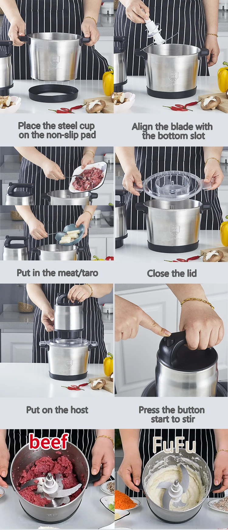 6L Stainless Steel Meat Grinder Yam Pounder and Fufu Machine for Home Use